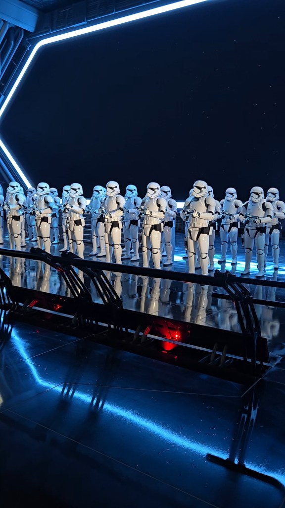 Rise of the Resistance is the ultimate example. The story starts the moment you enter the line. You begin in tunnels—pretty standard—but the theming sets the tone. Then, a pre-show begins. I remember being blown away the first time I saw the Haunted Mansion pre-show as a kid, but this takes it to another level. You’re briefed on your mission, step into a transport vehicle (which I assumed was the ride), get taken hostage by the First Order (still thought I was on the ride), and eventually end up in a jail cell. When the real ride vehicles finally appear, it hits you—you were in the queue the entire time. Absolute brilliance. All rides should be like this.