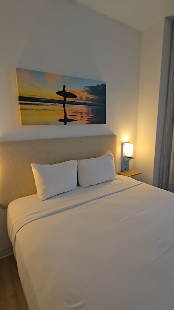 The rooms at Endless Summer are clean, bright, and decked out in a fun, modern surf/beach vibe. The lobby offers a convenient café and a Starbucks, perfect for a quick coffee fix. Like all Universal resorts, you get complimentary bus transportation to the parks and early park admission (one hour before the general public). For a budget-friendly stay of a few days, Endless Summer delivers comfort and convenience without breaking the bank.