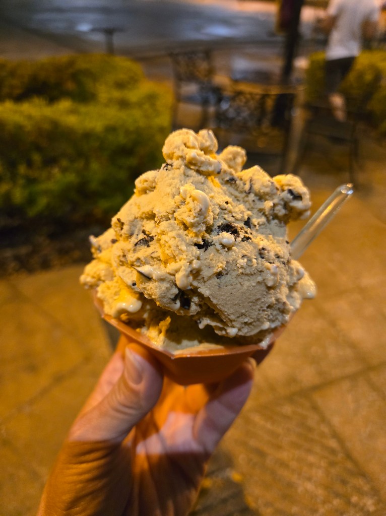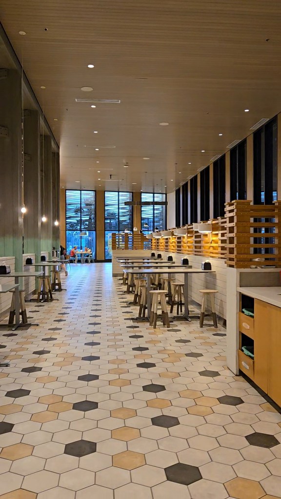The courtyard below is a highlight, featuring a Starbucks, a few restaurants (a bit pricey), a pub, and our absolute favorite: the Gelateria. The cappuccino gelato is a must-try!